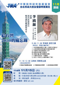 2025.11.29 (六) 09:30~12:00 台北成大校友會財經社邀請廖建中和林尚毅學長(建築碩80)分享「 從生活視角 看建築設計」,歡迎報名參加! 10 11 月, 2025 2025.11.29 (六) 09:30~12:00 台北成大校友會財經社邀請廖建中